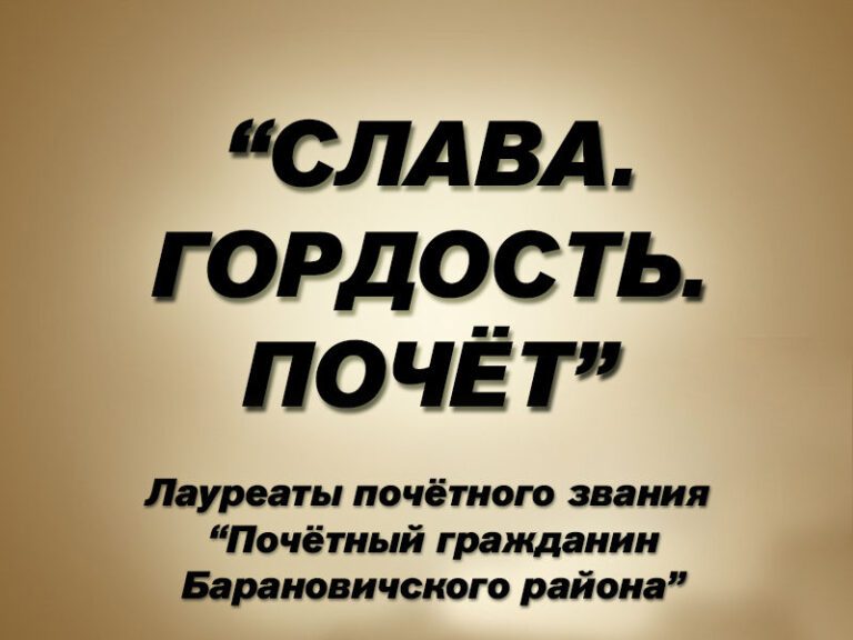 Электронный ресурс «Слава. Гордость. Почет», представляет собой комбинированную базу данных краеведческой направленности. Основу ресурса составляют материалы о жизни и деятельности лауреатов почетного звания «Почётный гражданин Барановичского района».